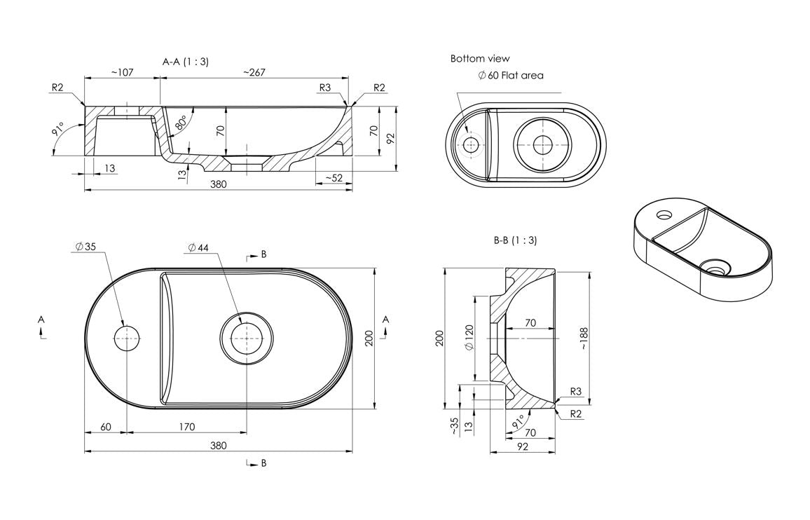 Bueno 380x200mm Mini Resin Washbowl - White