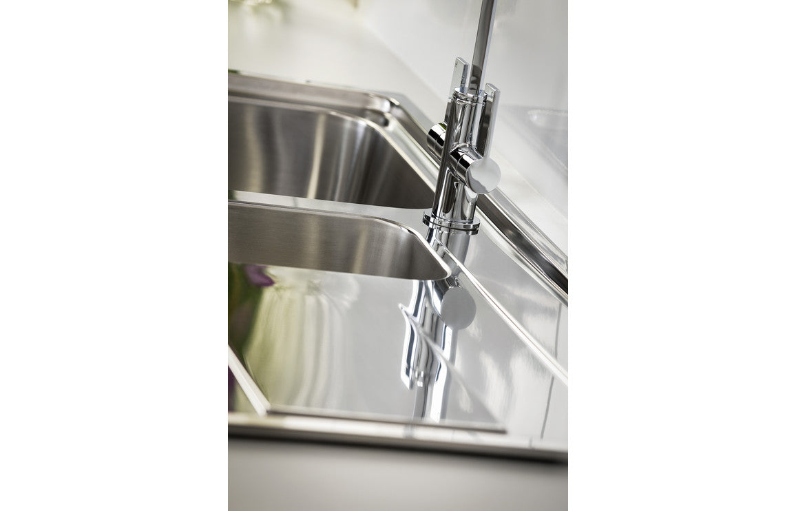 An Abode Ixis 1.5 bowl inset sink in Stainless Steel