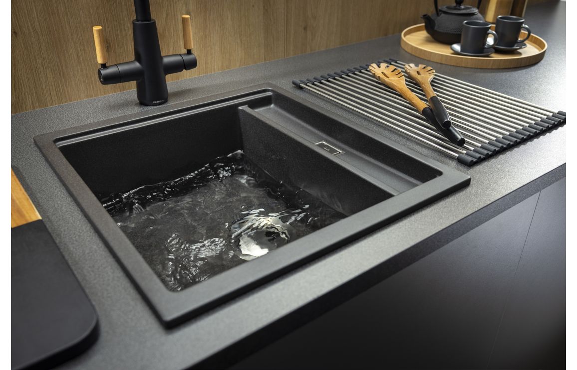 Second Bowl Dimensions: W 56 x D 383 x H 21mm Granite & acrylic composite sink with a matt finish Comes with Waste Kit and AX1002 (Long bolt strainer waste) AX1104 (Rectangular overflow) AX1008 (Pipework) AX1032 (Inset fixing clips) AX1153 (Undermount fixing clips) AX4049 (Documentation); Optional: AX2506 (Drainer) AX1508 (Colander) AX2024 (Chopping board)