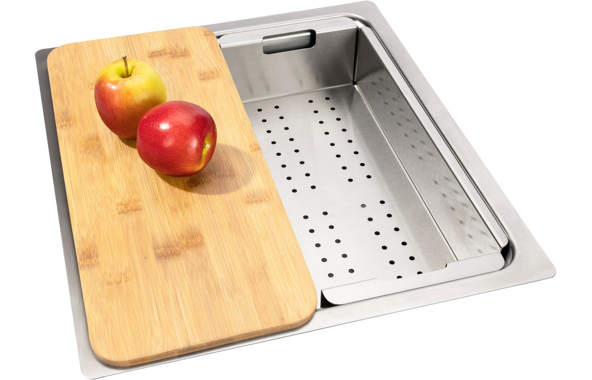 Cut out dimensions: W 360 x D 420mm (W 347 x D 407mm if undermount) Durable 304 stainless steel construction throughout Designed to work effotlessly with it's all System Sync accessories; sleek stylish and syncronised allowing for a seamless kitchen workflow