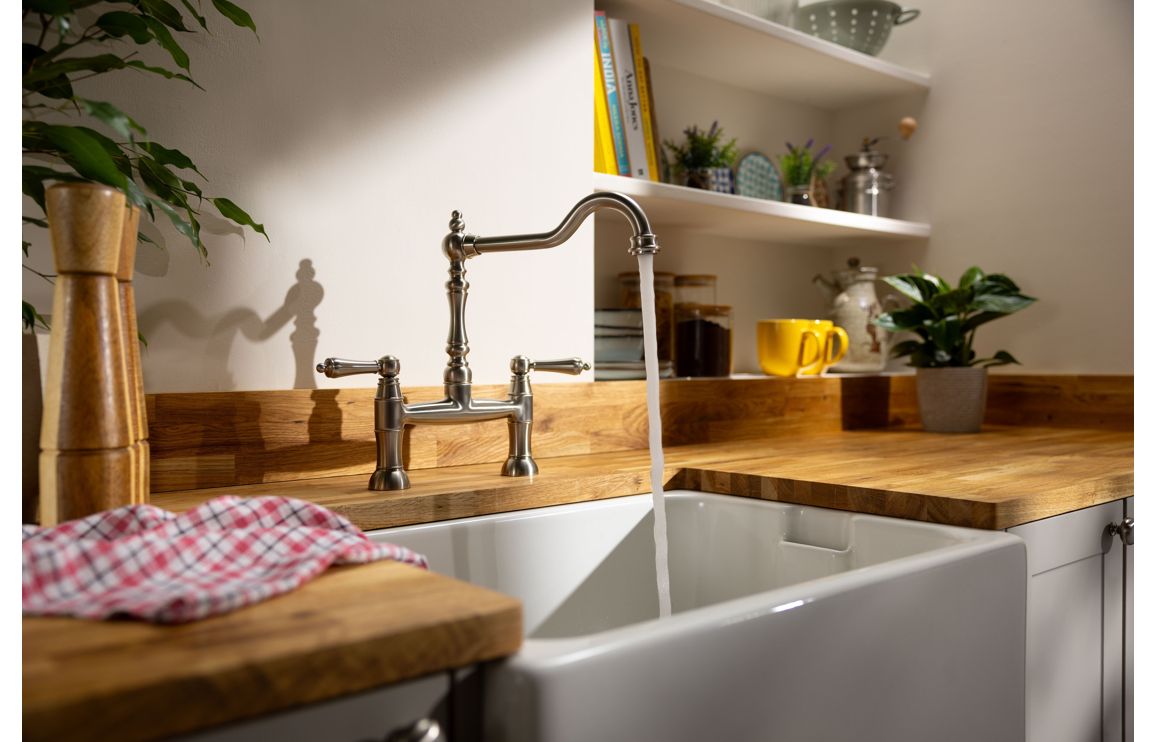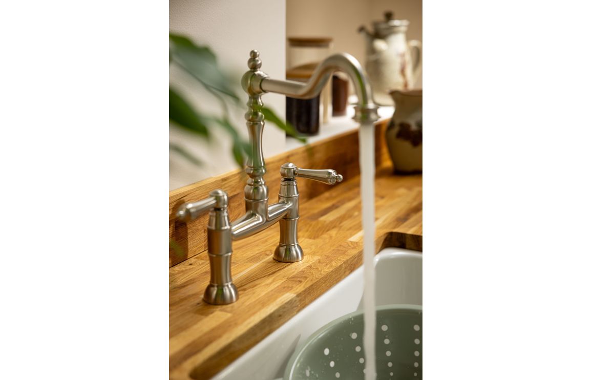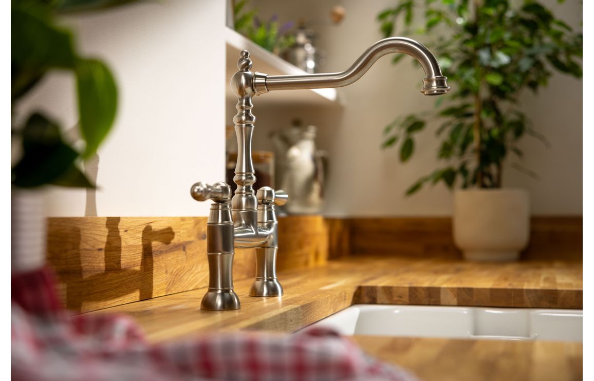 A classic Abode Mayenne tap in brushed nickel with a brushed finish