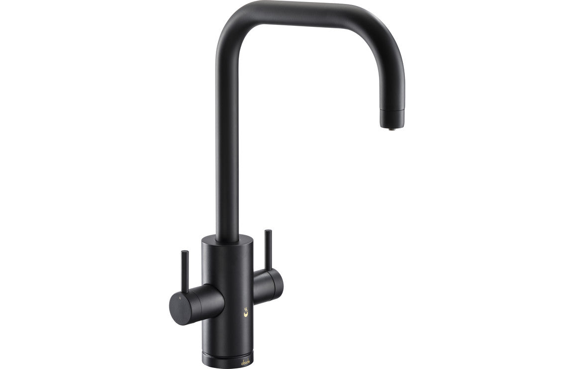Stylish 4 way mixer tap delivering domestic hot and cold ambient and 80-98°C filtered water