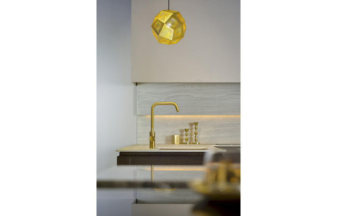 A contemporary Pronteau by Abode Propure tap in brushed brass with a brushed finish